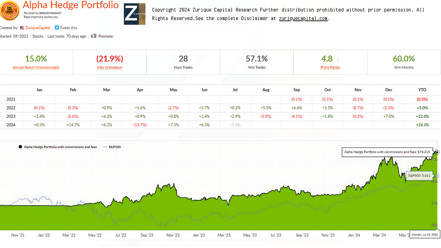 ALPHA HEDGE PORTFOLIO REVIEW - 07/15/2024 UPDATE