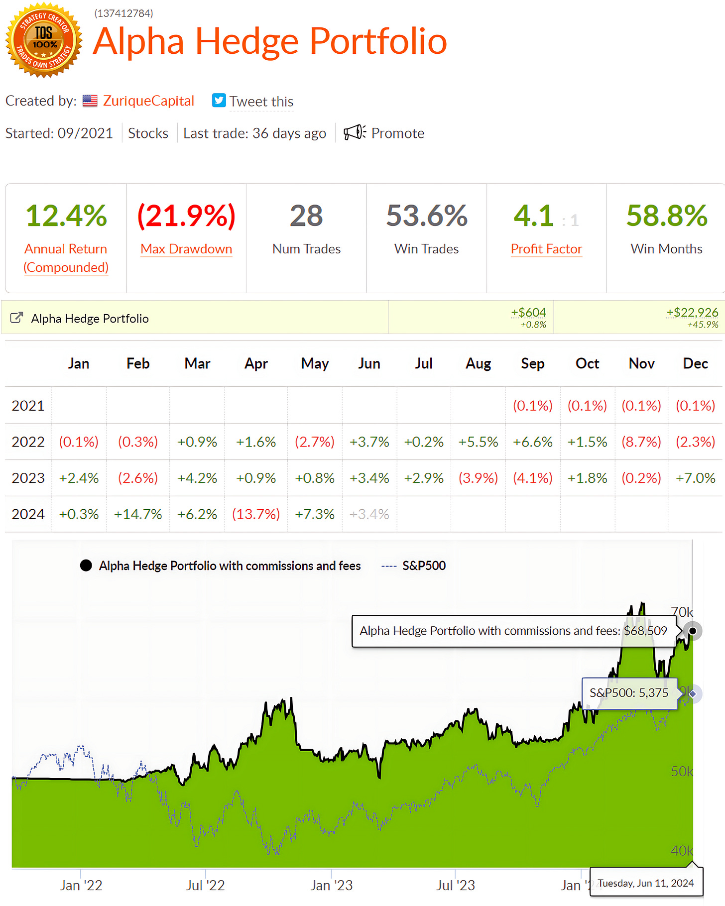 The Alpha Hedge Portfolio achieved a daily gain of +0.8%.