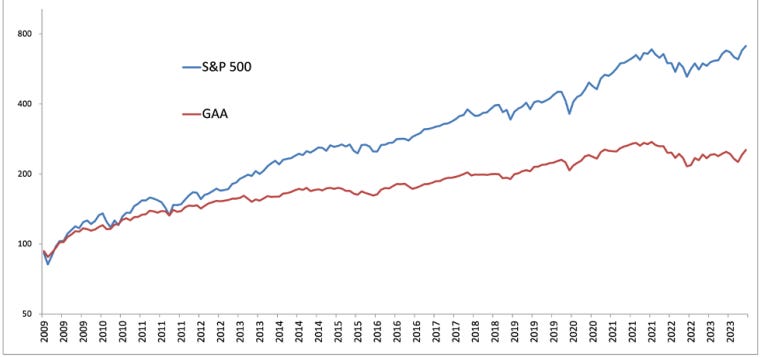 Many investors have questioned the rationale behind holding underperforming assets like foreign stocks and gold, leading to a phenomenon humorously dubbed "Global Asset Allocation Stress Disorder" (GAASD).