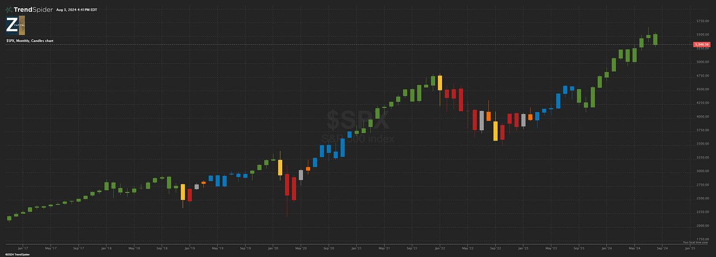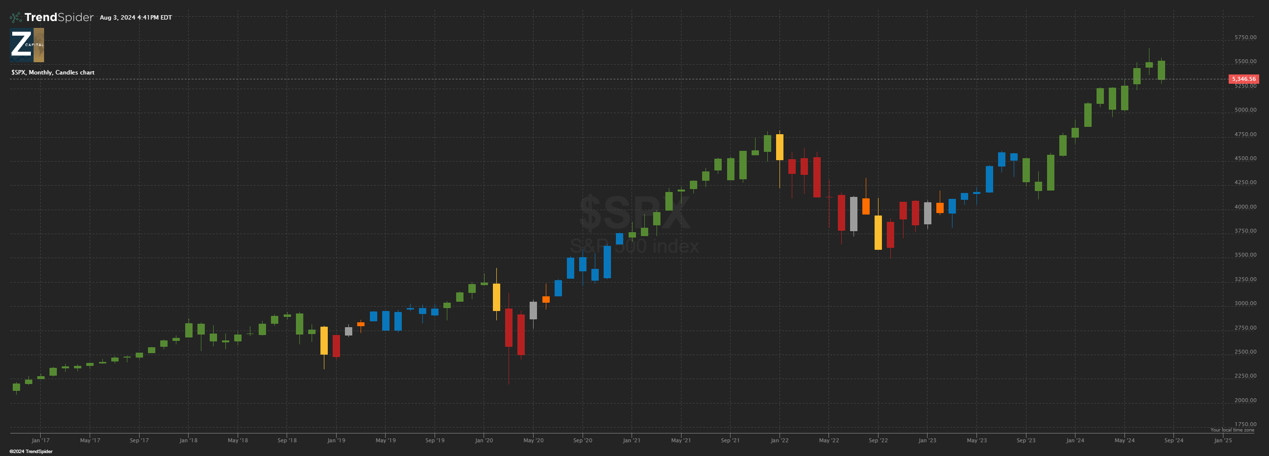 S&P 500 Index: SPY 0.00%↑ Faced a mid-month pullback, potentially leading to its second negative month in 2024.