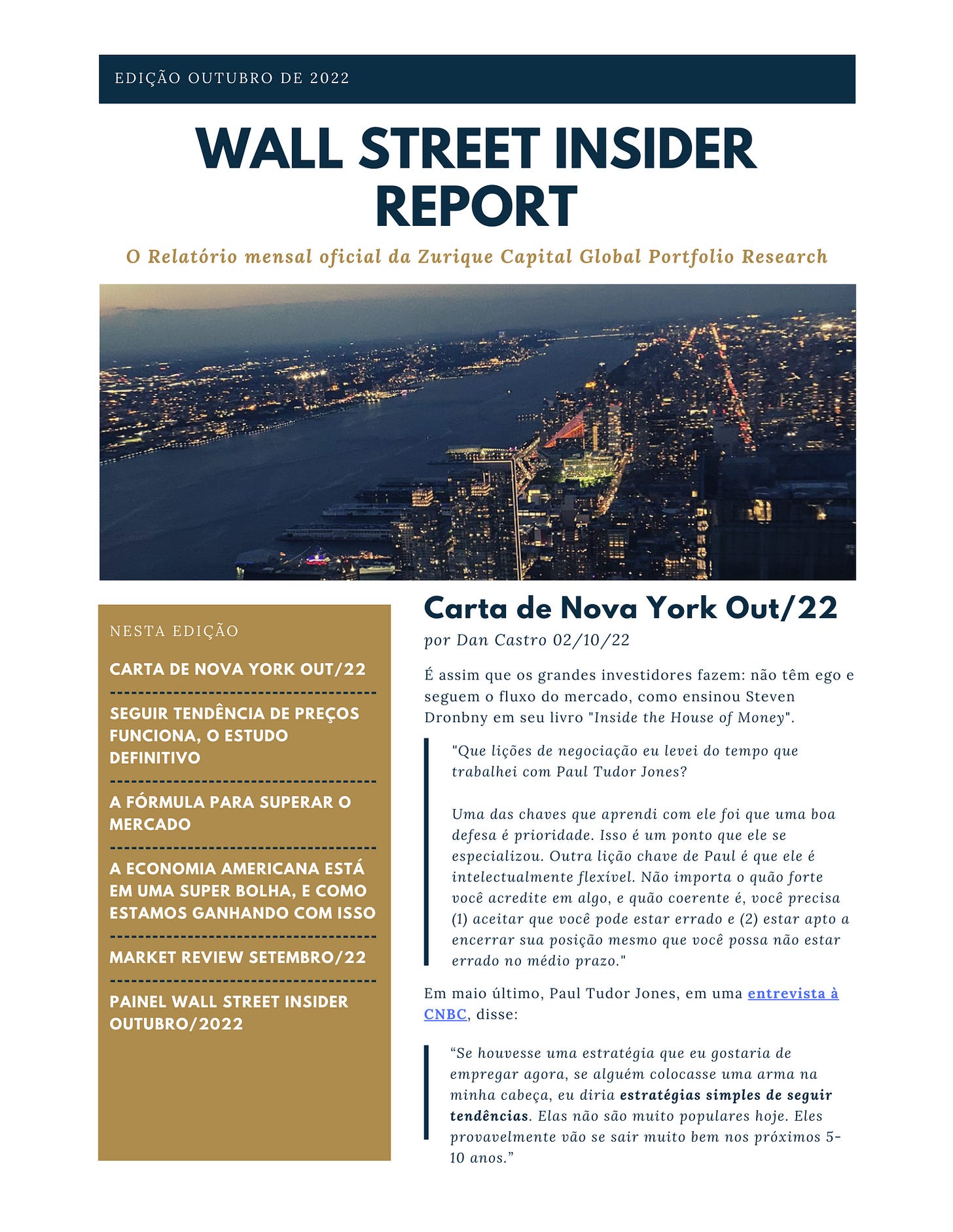 E chegamos ao fim de Setembro 6.2% melhores estratégias de investimento da Plataforma Americana Collective 2. Com 16.1% acumulado no ano, contra -25.23% do índice S&P500. Mostrando que Paul Tudor Jones estava certo na sua afirmação, seguir tendência de preços funciona, comprovadamente, como sabem os Mentorados Wall Street Insiders, que estão comigo na nossa Sala diariamente desde 2018, e como vou mostrar através de um estudo detalhado nessa edição do Wall Street Insider Report, mas por que muitos tentam aplicar e não tem resultados? Porque existe a variável disciplina do investidor entre a estratégia e a conta bancária.