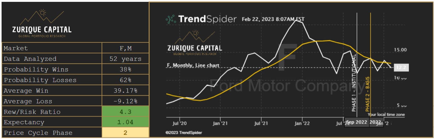 A Ford já iniciou um Ciclo de Preços, no entanto, ainda não confirmou a Tendência de Alta, estando em FASE 2.