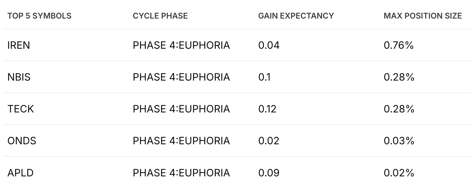 NBIS 0.00%↑ CRWV 0.00%↑ CWD 0.00%↑ WOLF 0.00%↑ UNH 0.00%↑ OCTO 0.00%↑ IREN 0.00%↑ ONDS 0.00%↑ STEC 0.00%↑ TECK 0.00%↑ APLD 0.00%↑ YOUL 0.00%↑ ZONE 0.00%↑ MMA 0.00%↑ TRML 0.00%↑ GSAT 0.00%↑ JEM 0.00%↑ SAIL 0.00%↑ ALB 0.00%↑ TMDX 0.00%↑ LGHL 0.00%↑ CIFR 0.00%↑ BON 0.00%↑ TEAM 0.00%↑