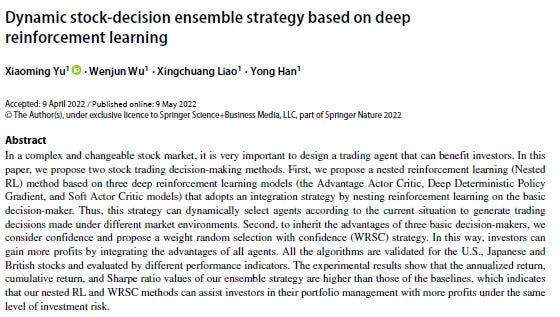 The Dynamic Stock-Decision Ensemble Strategy Based on Deep Reinforcement Learning shows that investors who harness AI see superior results.