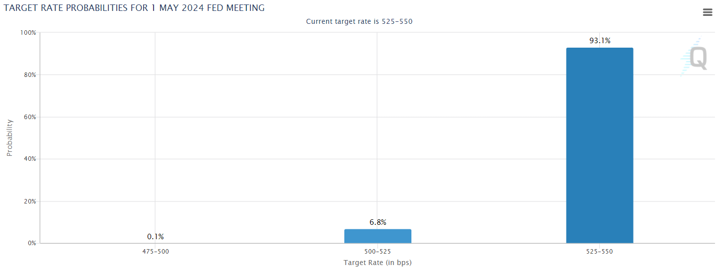 This reflects a tempered anticipation of imminent interest rate cuts. However, according to the CME FedWatch Tool, there has been no adjustment in expectations for rate cuts by the Federal Reserve up to the June meeting.