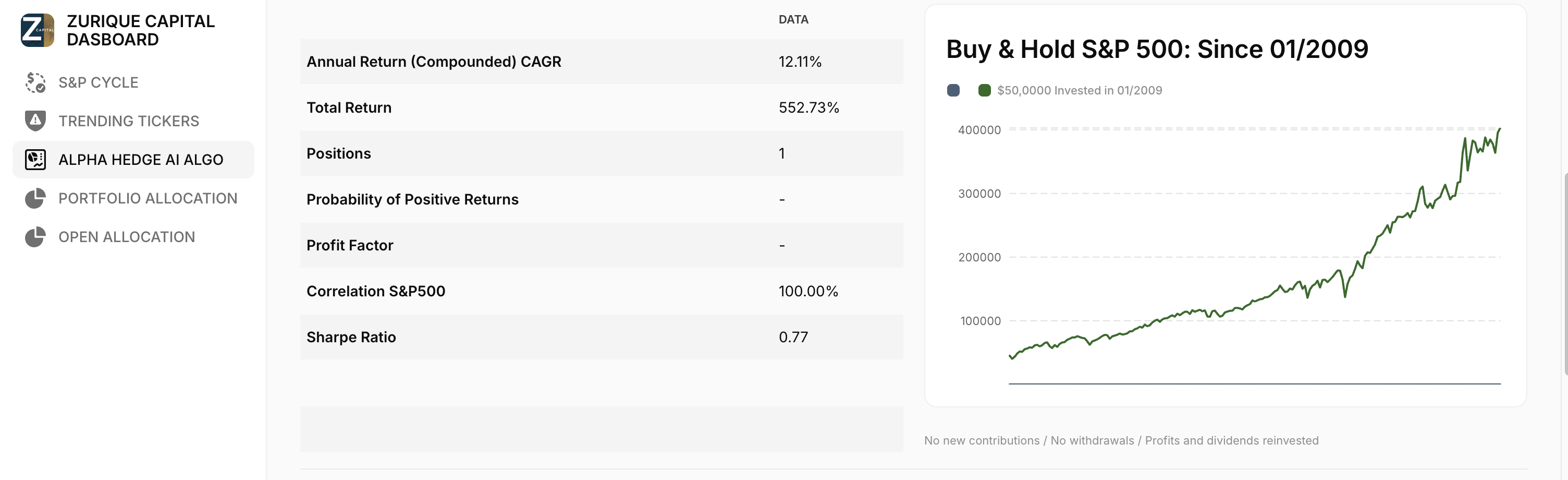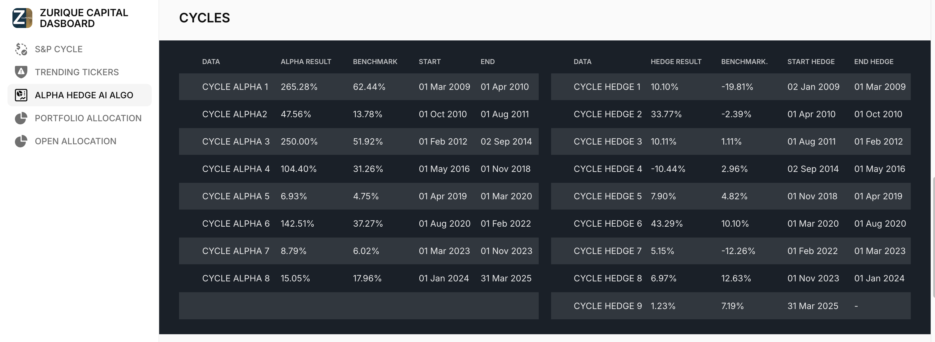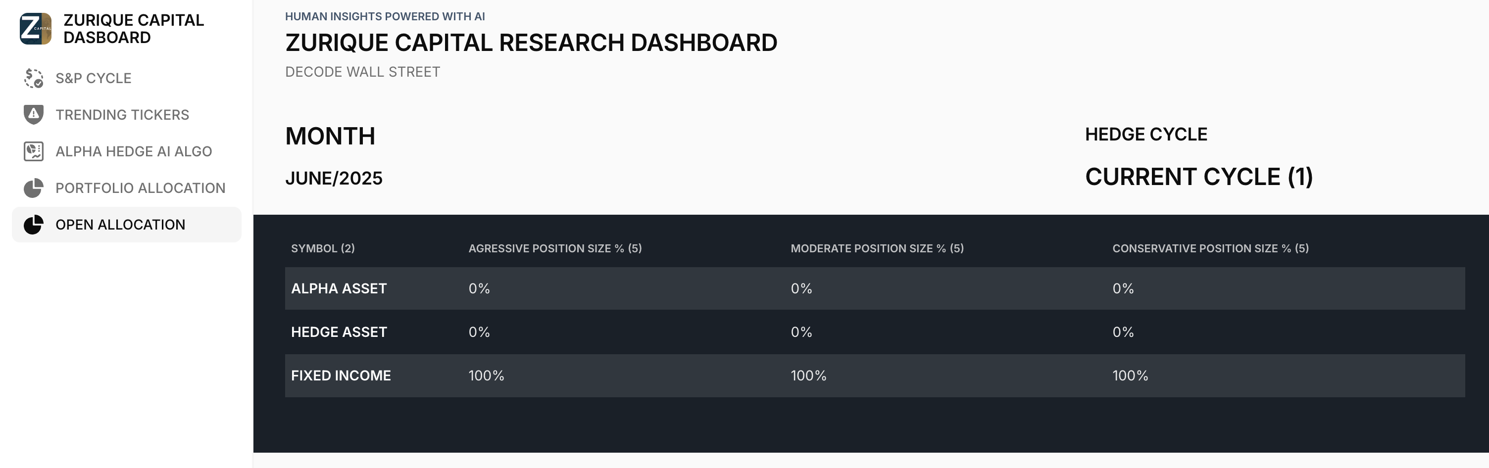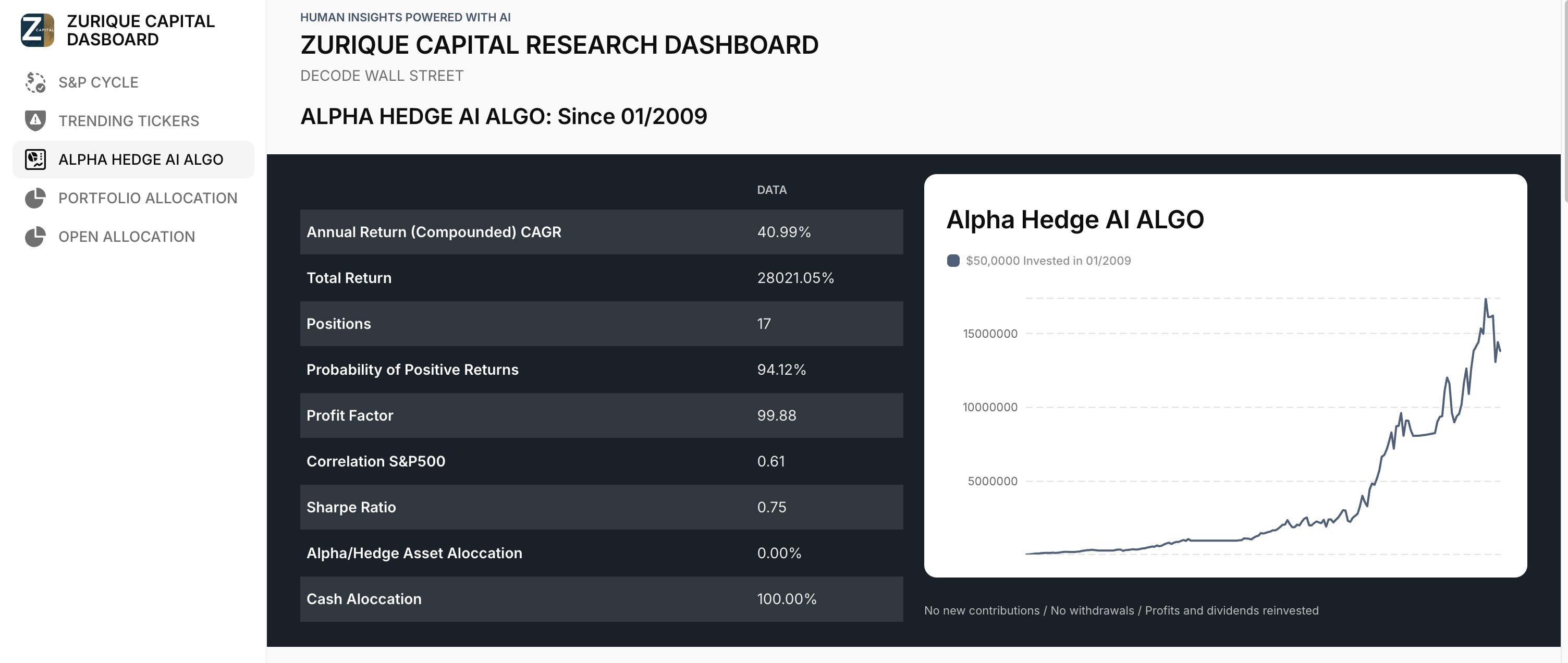 Our Alpha Hedge AI Algo Portfolio focuses on a single high-conviction asset or cash.