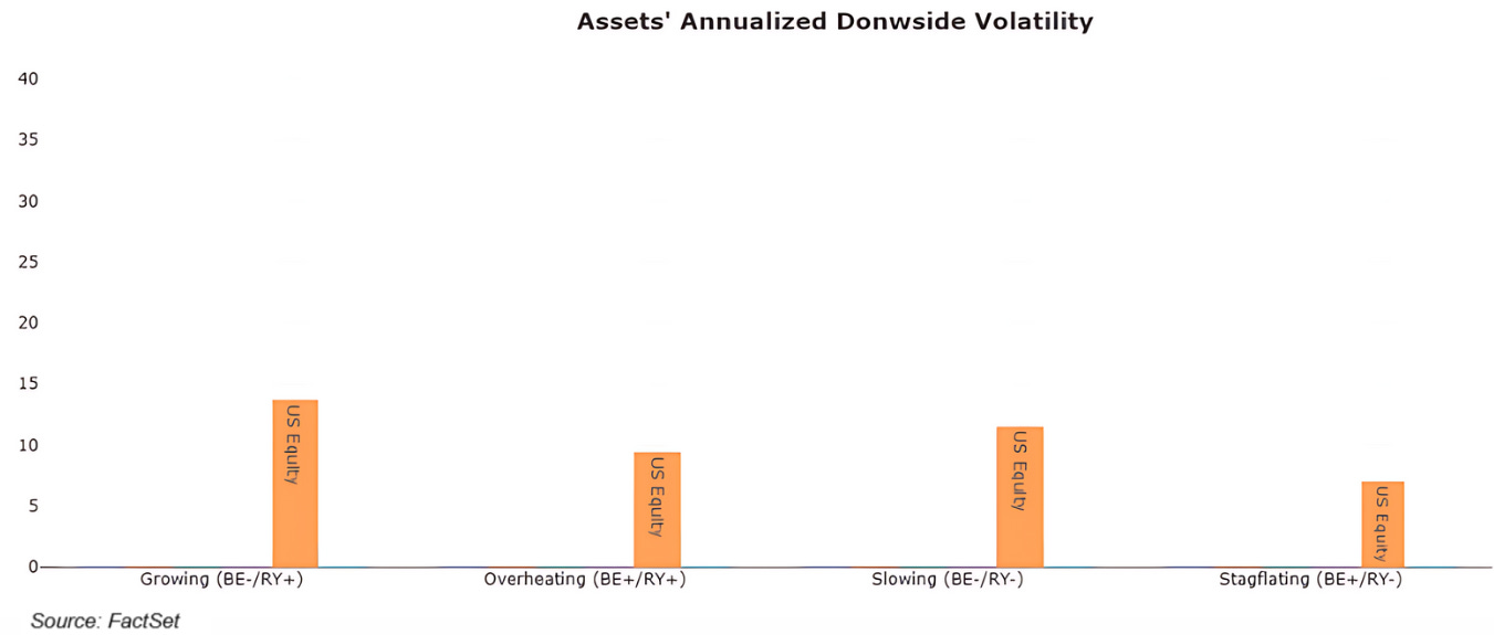 Volatility analysis shows that the S&P 500 have relatively low deviation in overheating and stagflation regimes.