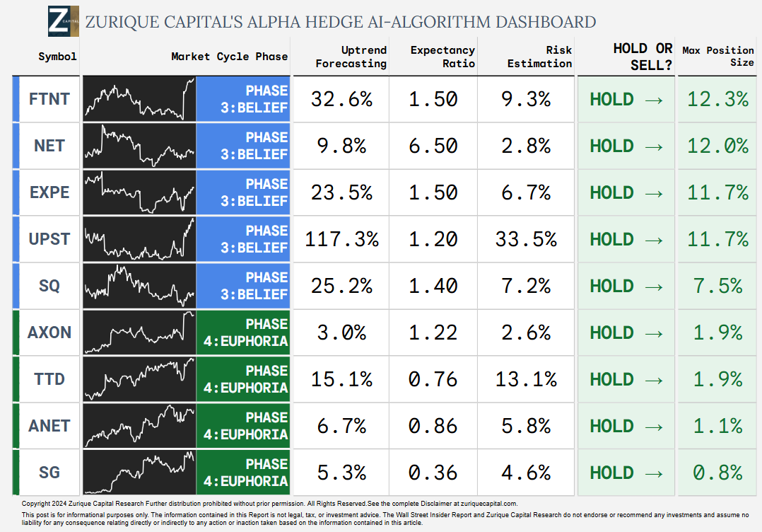 FTNT 0.00%↑ NET 0.00%↑ EXPE 0.00%↑ UPST 0.00%↑ SQ 0.00%↑ AXON 0.00%↑ TTD 0.00%↑ ANET 0.00%↑ SG 0.00%↑