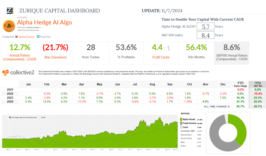 Alpha Hedge AI-Algo Portfolio Review: 11/07/24
