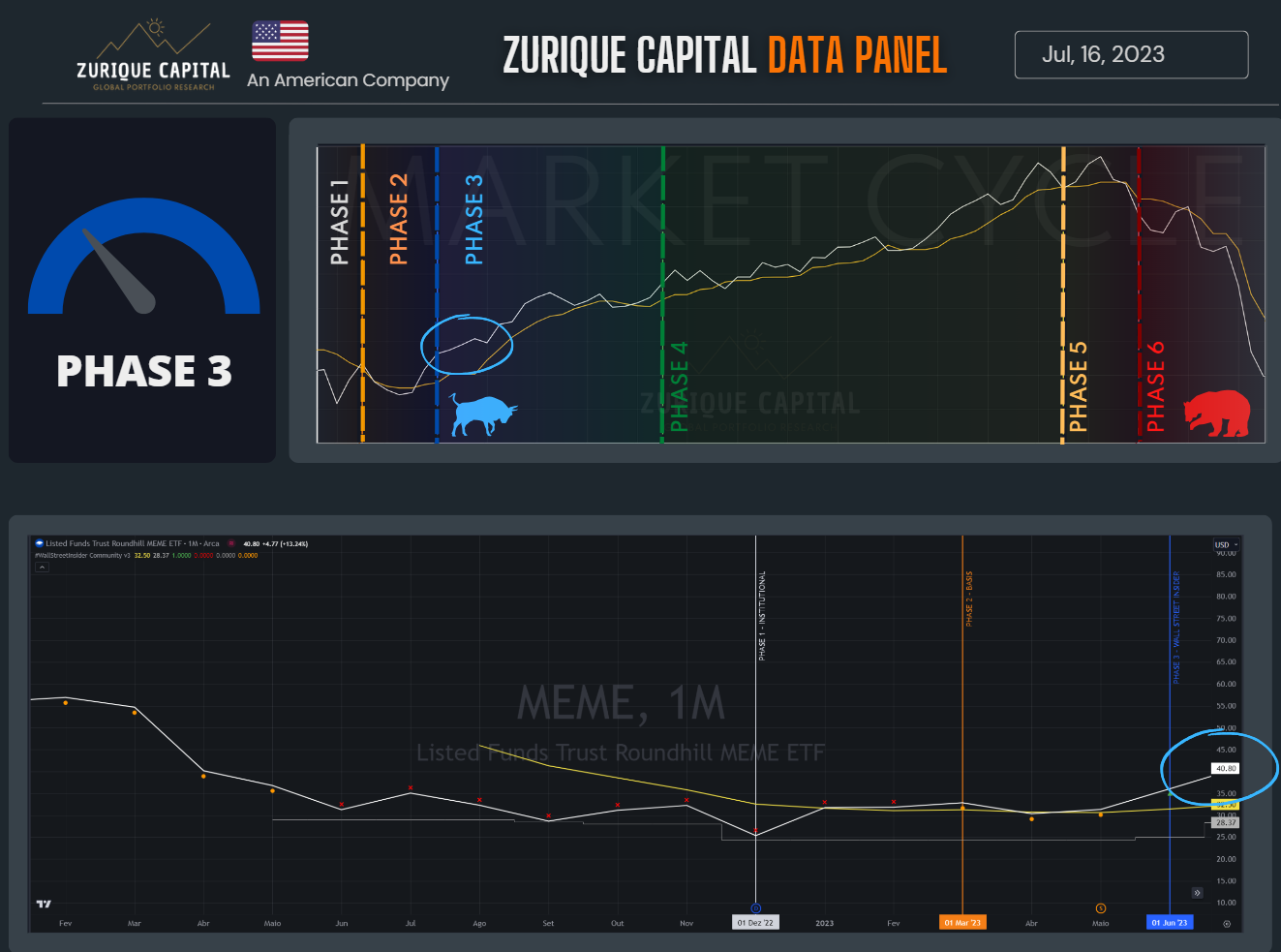 The good news about the MEME 0.00%↑ ETF is that the issuer does this research for you, and other good news is that knowing how to read the Market Cycle, you can do your own research and know exactly when to enter and exit any asset.