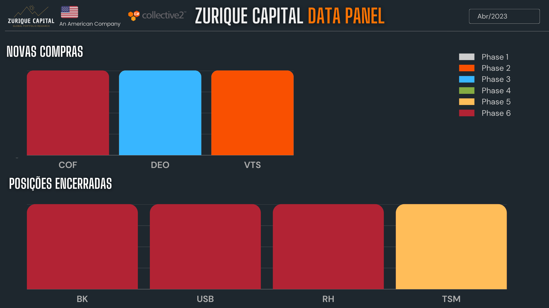 Como observamos nos gráficos, a maior parte dos Ativos encontram-se Ciclo Negativo (Fases 6, 1 e 2).