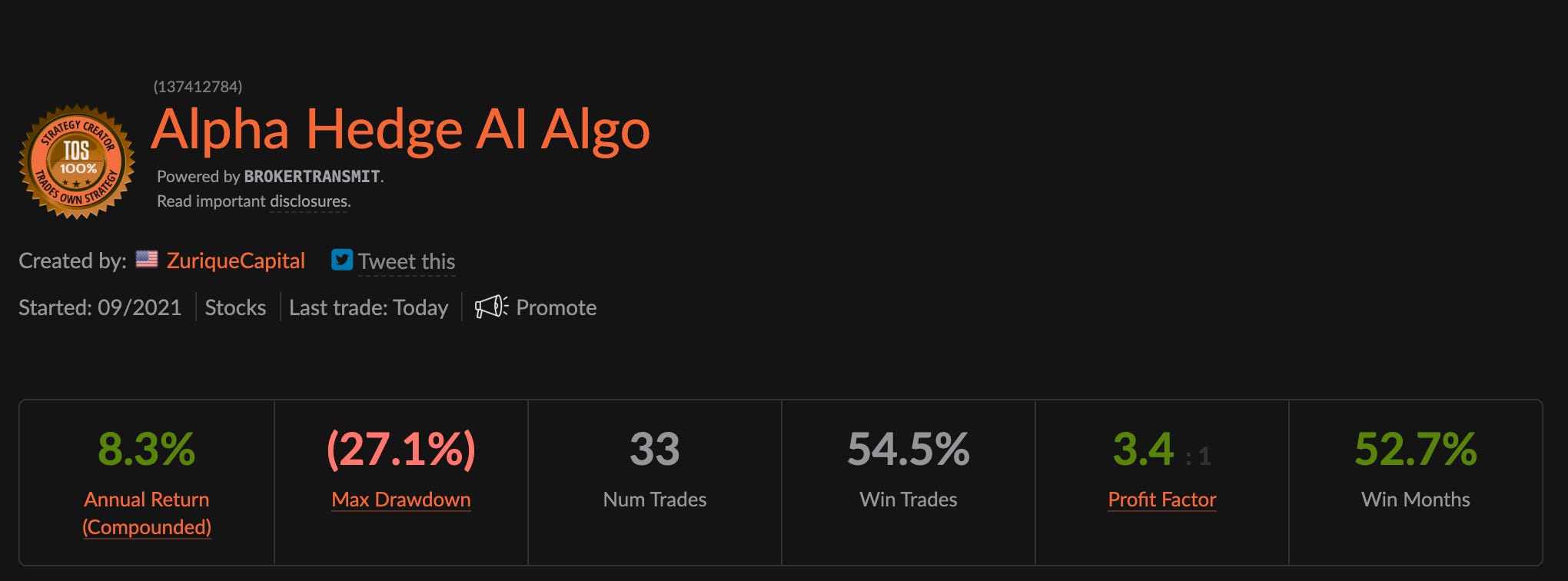 These are not backtested numbers. The figures below come from verifiable, audited data going back to September 2021: