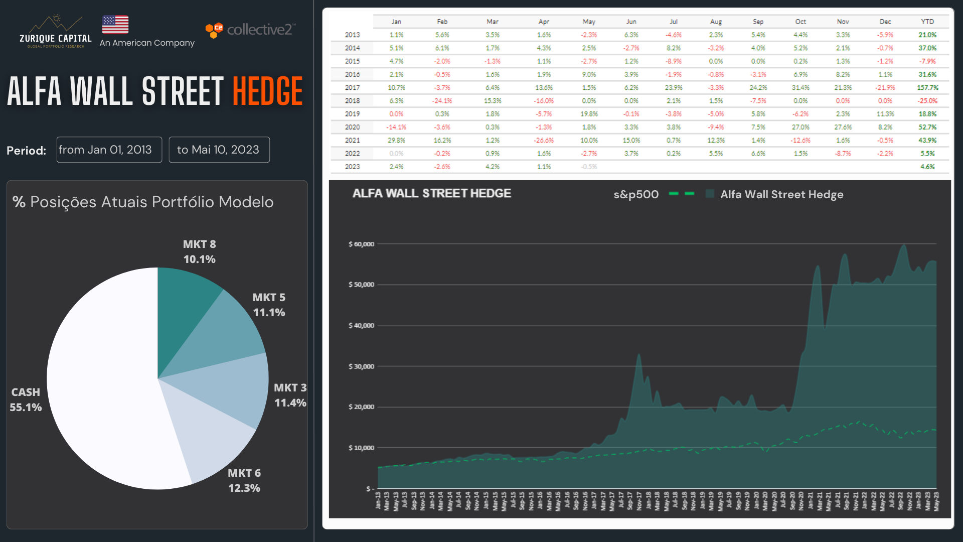 Mantemos nosso CAGR em torno de 26% e o nosso Alfa sobre o S&P em aproximadamente 4 vezes (3.87)