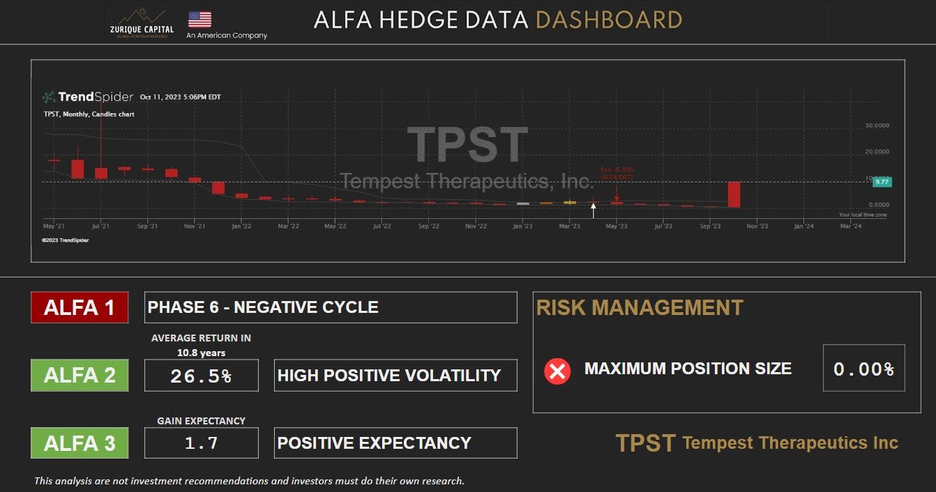 Tempest Therapeutics TPST 0.00%↑ has been navigating through PHASE 6 since April 2023. The stock is in a bearish trend (despite the +3000% of gains).