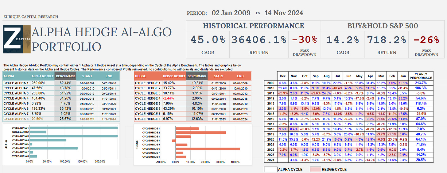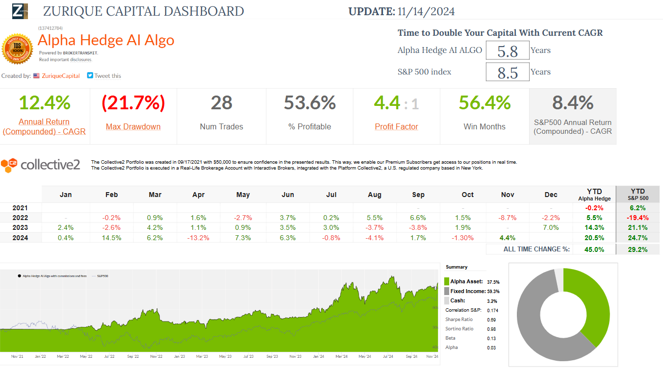 Alpha Hedge AI Algo Portfolio Review 11/14/24