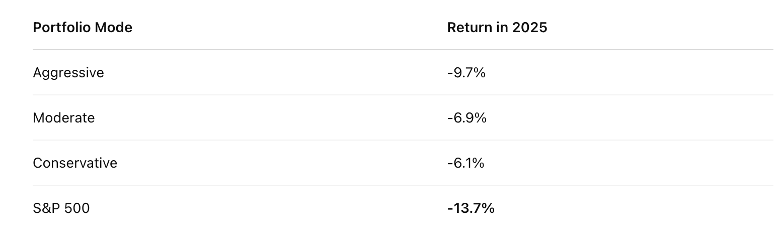 Despite recent volatility and drawdowns during the current protection cycle, long-term results continue to demonstrate the strength of Alpha Hedge AI Algo strategy across all risk profiles.