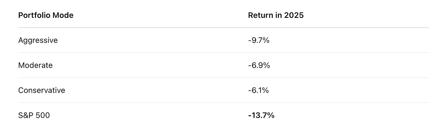 Yes—our portfolios are currently negative this year. But the drawdown is controlled, not reactive. In fact, this is expected at the start of a new bear market phase.