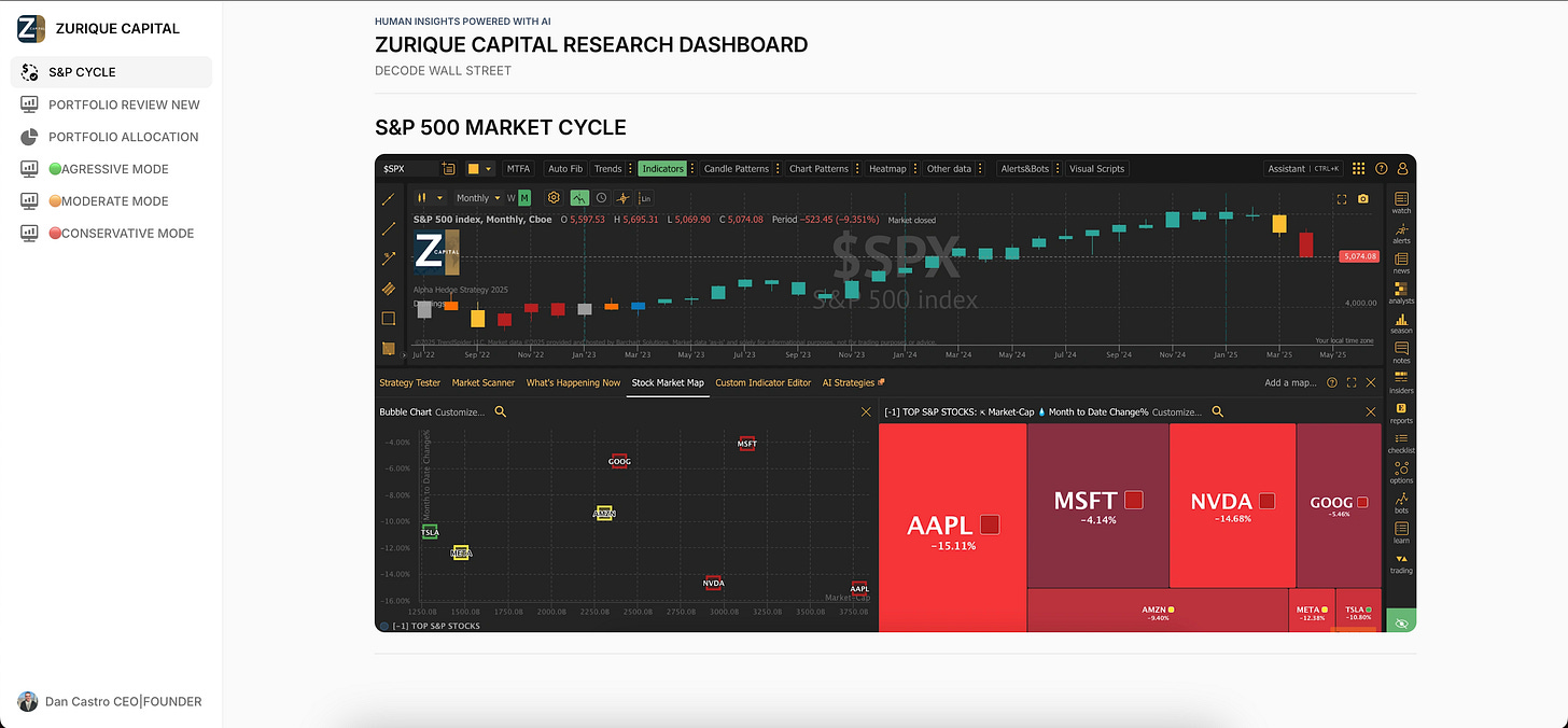 Zurique Capital’s portfolio is structured into three risk profiles — Aggressive, Moderate, and Conservative — each designed to match a different investor profile. Below is a detailed overview of daily, long-term, and current protection cycle performance, benchmarked against the S&P 500.