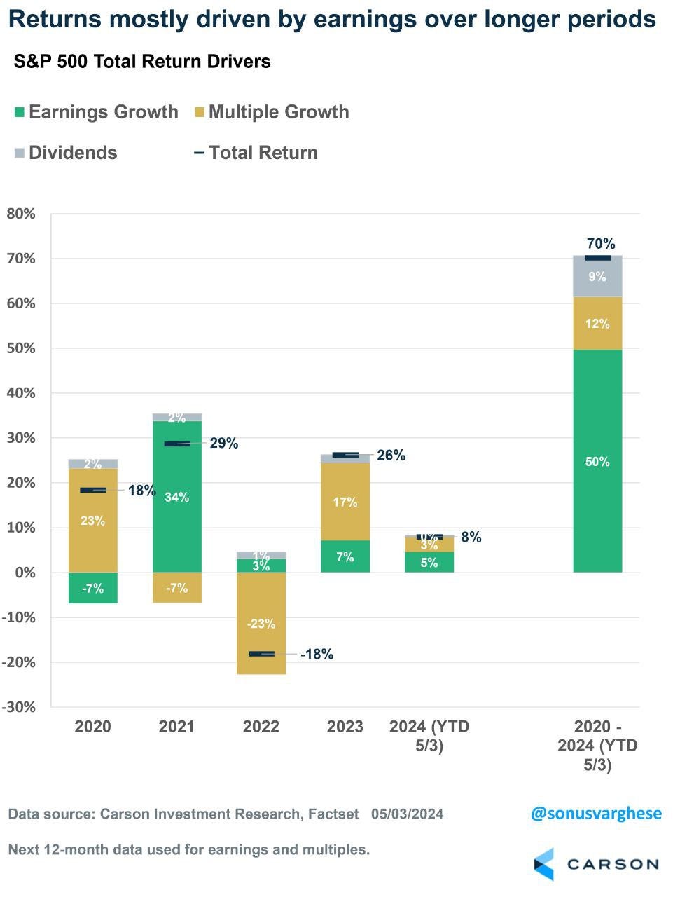 Despite high valuations, the stock market's performance is fundamentally supported by robust earnings growth, providing confidence in its resilience.