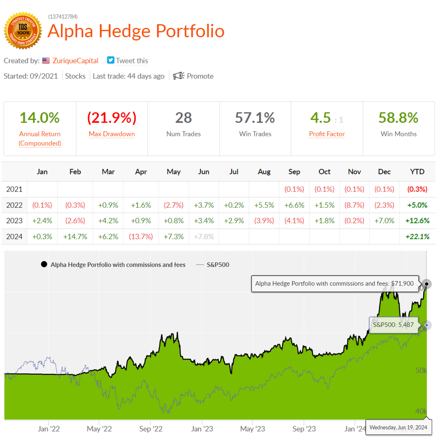 The Alpha Hedge Portfolio experienced a positive daily performance on Monday, gaining 0.2%, in alignment with the S&P 500's modest rise of approximately 0.3%, marking its 31st record close of the year.