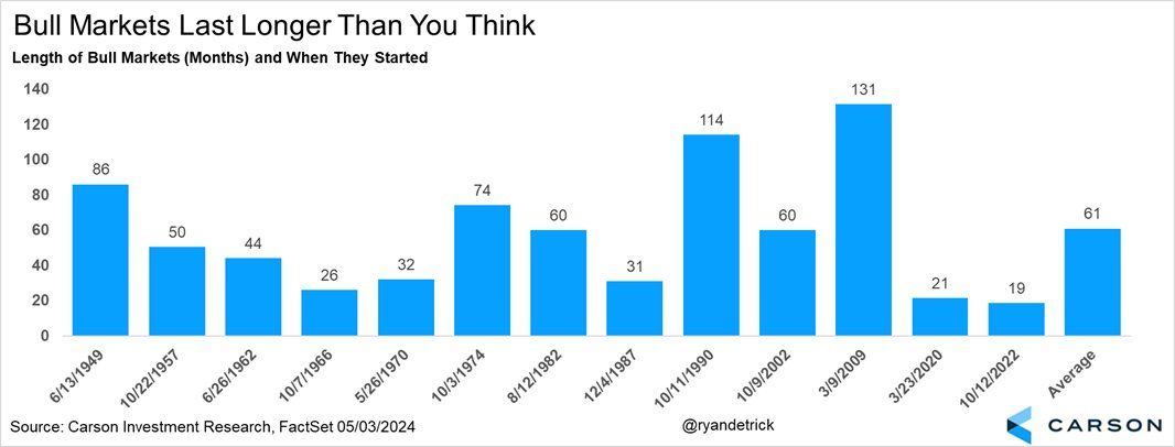 Historically, bull markets have an average duration of 61 months, and we are currently approaching month 20 of the current bull market. This prompts questions about the sustainability and potential longevity of this trend.
