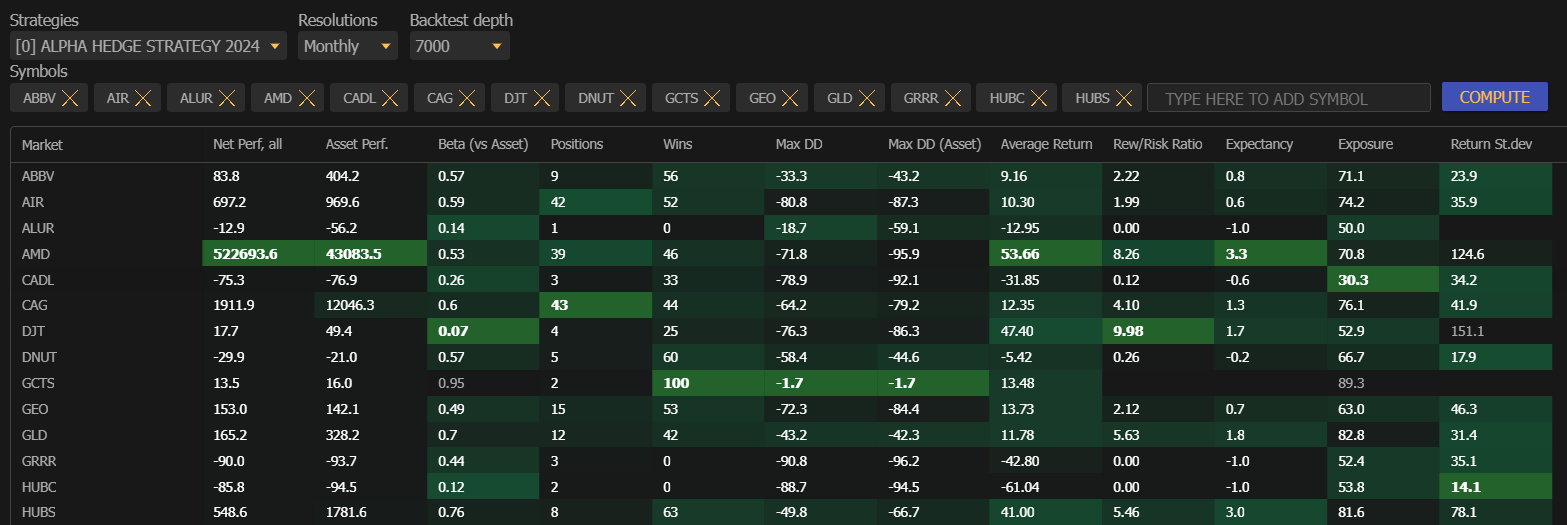 The assets undergo a statistical data analysis, and those in a negative cycle, exhibiting low positive volatility and a negative expectancy ratio, are excluded.
