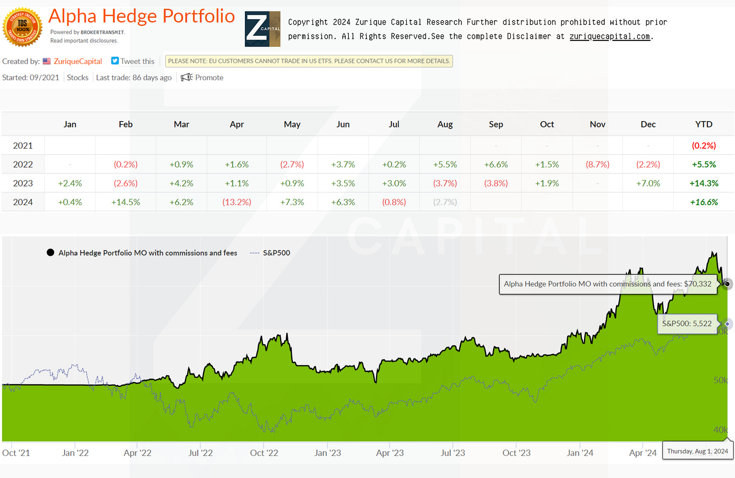 ALPHA HEDGE PORTFOLIO REVIEW: 08/01/2024 UPDATE