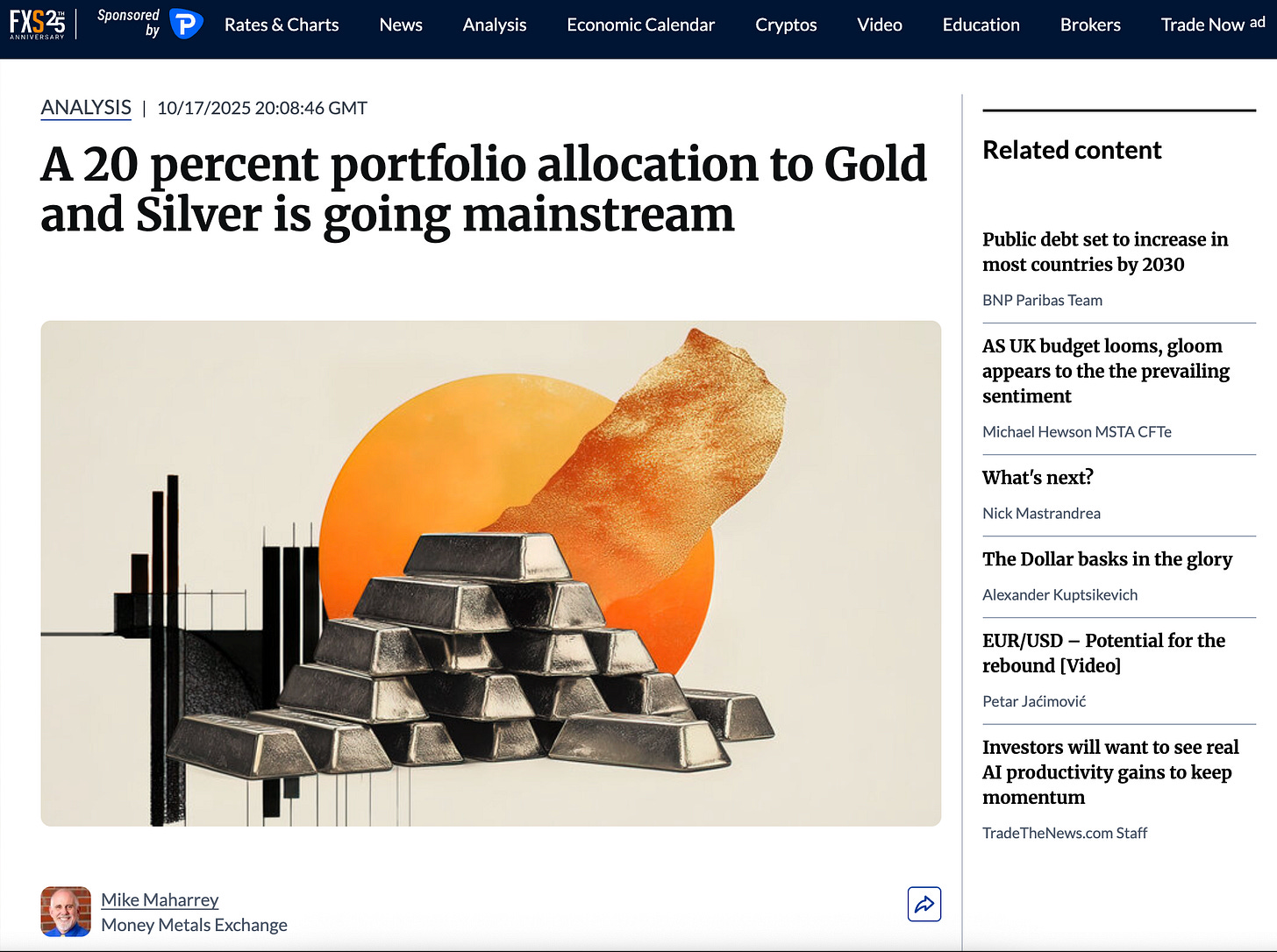 Morgan Stanley’s CIO is shifting away from 60/40. Sprott is doing the same. CNBC is openly discussing 20% allocations to gold and silver. That alone shows how much the landscape has changed.