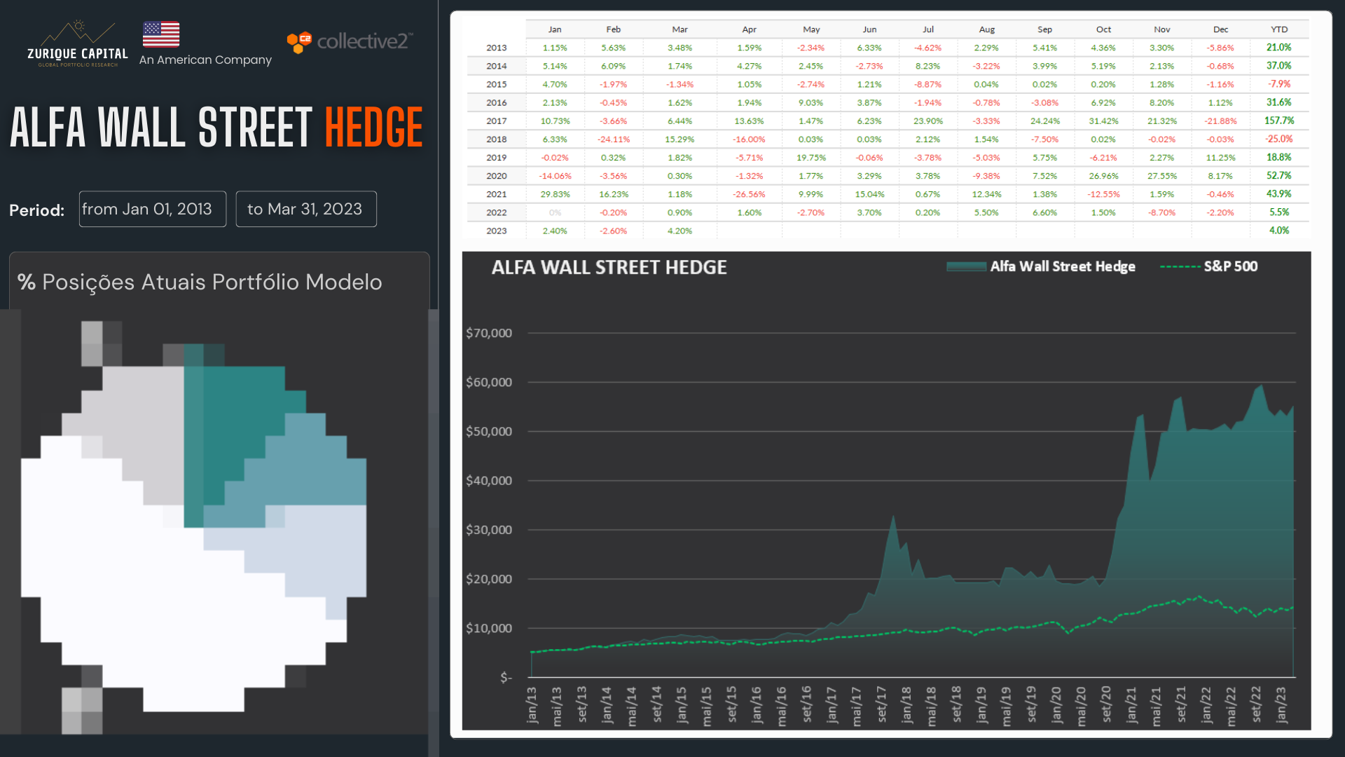 6. Dados Estatísticos Portfólio Alfa Wall Street de Jan/13 a Semana #09/23.