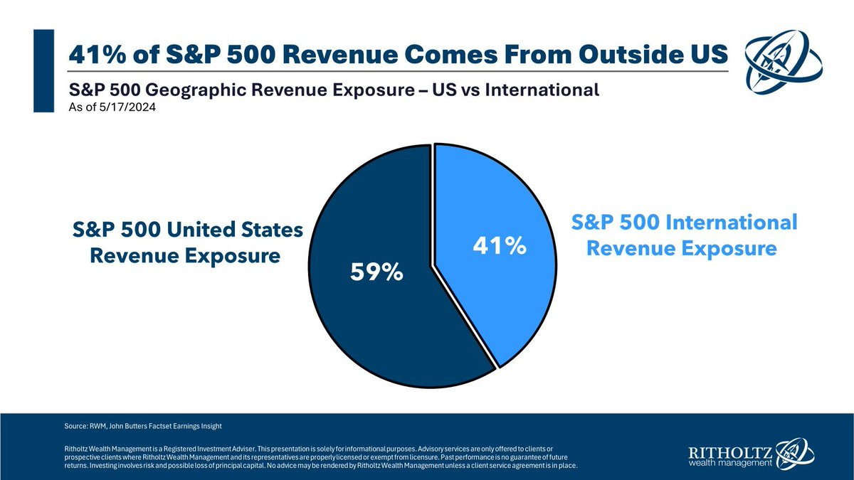 US companies generate about 41% of S&P 500 SPY 0.00%↑ revenues from abroad. This means that investing in US firms is not limited to US exposure alone.