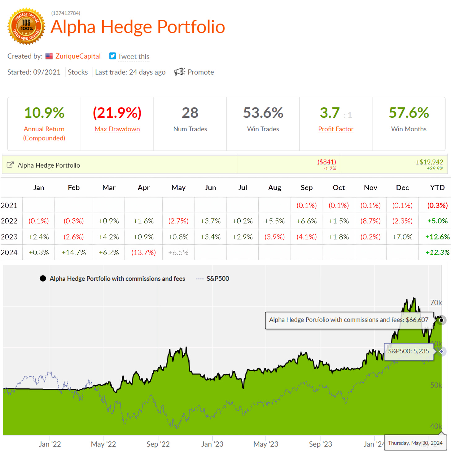 Alpha Hedge Algorithm Performance: +1,319.4% in 17.4 Years