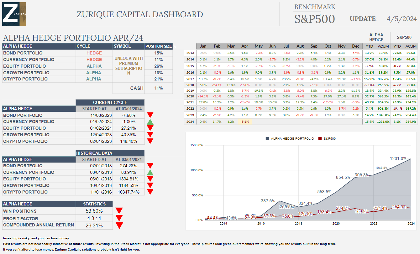 If you want to know more details about the Alpha Hedge Strategy and Portfolio, learn about the importance of recognizing trends, understanding how timing is crucial in investments, and how the right strategy can make all the difference in your financial growth, join the Market Cycle Mastery Course: